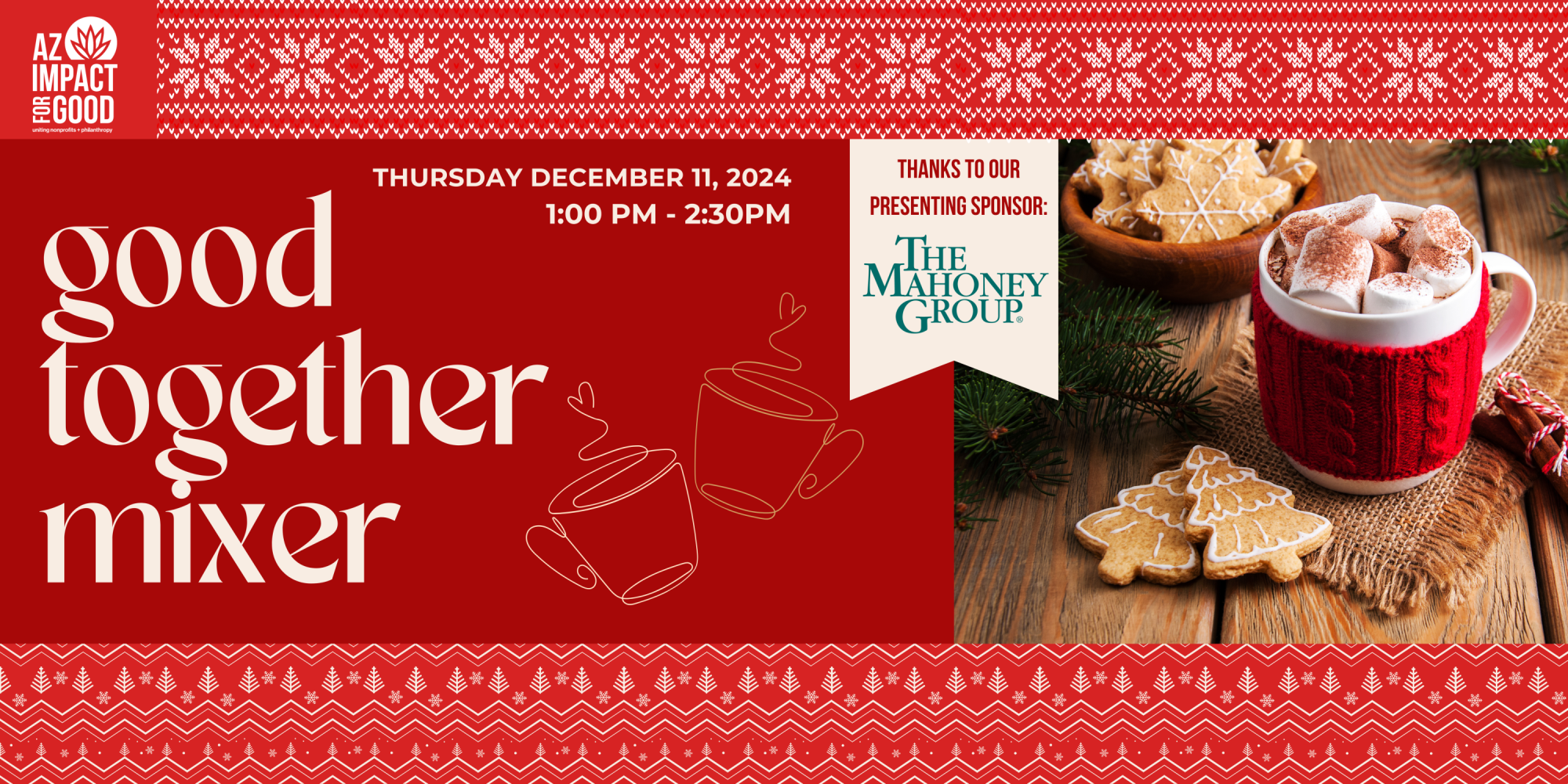 Join us for a cozy afternoon in Tucson on Thursday, December 11 (1:00–2:30 PM) for our final Good Together Mixer of the year! Sip something warm from our hot beverage bar, swap stories with fellow members, and wrap up the year surrounded by good people doing great work.