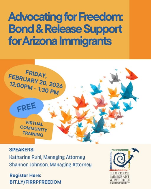 JOIN US “Advocating for Freedom: Bond & Release Support for Arizona Immigrants,” a training hosted by the Florence Project for impacted people and their families, allies, and attorneys interested in learning more.